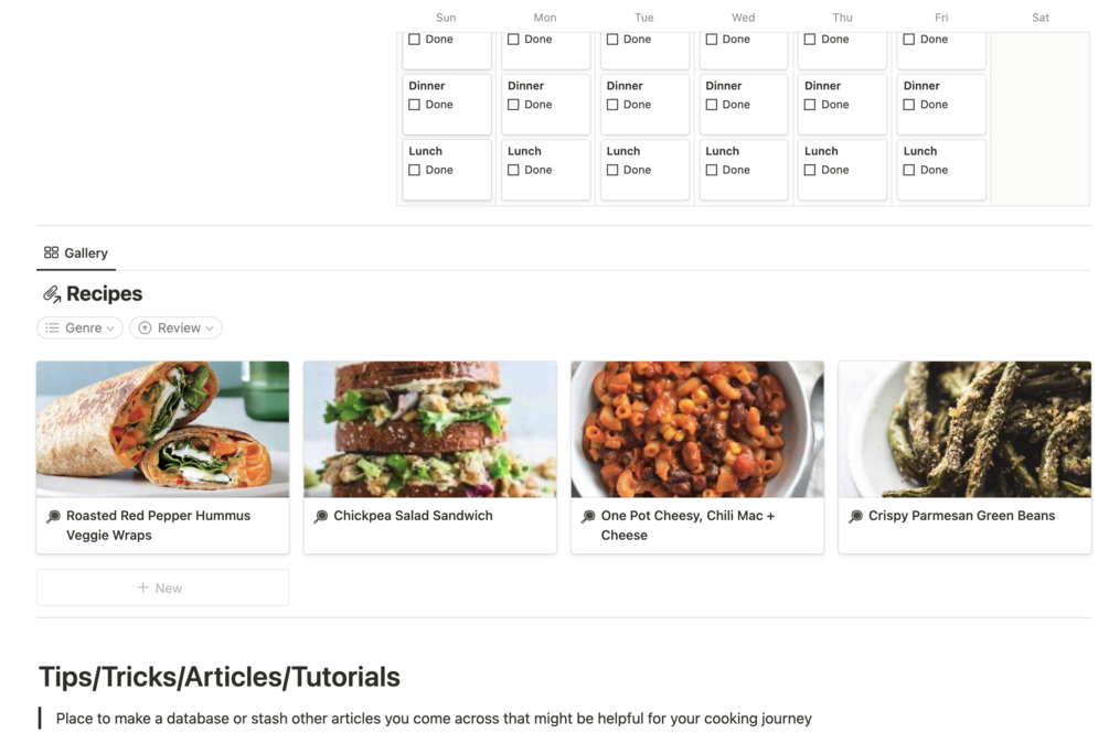 This is an all-in-one template for those of you who are interesting in cooking more. I have made it my goal for 2023 to eat more home-cooked meals, and this template has already aided me in that goal. Check it out!